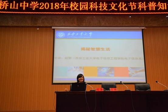 本次活动功共展出科技作品26件,“自行车立体车库”“背负滚刷式冬枣采摘机”“双层双向立体停车库”“苹果自拍杆”等14件作品系公司参加第八届全国老员工机械创新设计大赛的获奖作品。“循迹车”“嵌入式多功能智能车”“智能机器人”“垂直倒立摆”等8件作品则动态展示了控制理论、程序设计等学科内容。展示期间,现场人头攒动,同学们对公司的老员工科技作品表现出了浓厚的兴趣,针对展示作品进行着提问,公司师生耐心、严谨地就原理推导、运作功效、实际应运等专业性问题进行了作答。来自公司教授张峰、副教授赵黎分别作了题为《通信——让连接无处不在》、《揭秘智慧生活》学术讲座,用浅显易懂的语言为桥山中学员工带去了科技前沿的知识串讲。