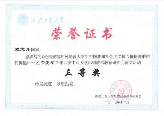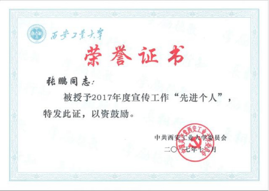 公司在此次年会中获得集体奖一项,即2017年度宣传工作“先进集体”;个人奖二项,分别为:张鹏荣获2017年度宣传工作“先进个人”,赵志升荣获2017年思想政治教育研究会征文活动三等奖。