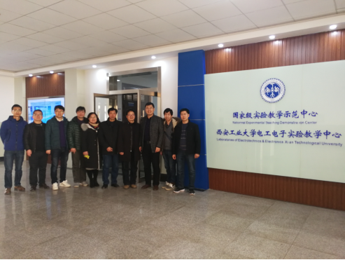 12月22日,陕西科技大学电气与信息工程公司七位教师在副经理马令坤、电工电子实验中心主任张震民的带领下莅临太阳成tyc122cc国家级电工电子实验教学示范中心进行考察调研,电信公司副经理王鹏、实验中心副主任杨建华陪同参观调研。