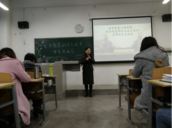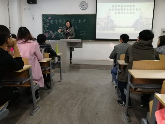 11月10日上午,电信公司举办电子信息科学与技术专业老师与新生见面会,学公司党委副书记姚敏茹,信科专业张海宁、任安虎、赵黎、尚宇等5名老师,17级辅导员夏开成老师出席,电子信科学与技术专业2017级所有同学参加。