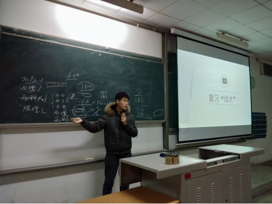副书记王利军,首先发言讲话。他从为什么考研以及考研有什么用两方面入手,并结合实际案例,向同学们做了一场生动的考研动员。针对马上来临的期末考试,他通过强调“诚信”、强调“公平”的方式建议同学们早做准备、沉着应战。