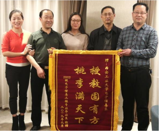 11月3日,返校参与电子信息工程专业认证工作的员工,2002级毕业生易大玲向电子信息工程系赠送“教授固有方,桃李满天下”的锦旗,表达对公司的感恩之情,感谢老师们的培养和教育。