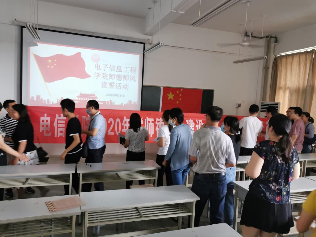 活动伊始,张忠以《新时代高校教师职业行为十项准则》为教育学习内容,通过讲授坚定政治方向、自觉爱国守法、传播优秀文化、潜心教书育人、关心爱护员工、坚持言行雅正、遵守学术规范、秉持公平诚信、坚守廉洁自律和积极奉献社会十个方面,大家清楚的了解了新时代高校教师职业行的内容和精神内涵。学习结束后,活动进入宣誓活动环节,全体教师在副经理王鹏老师的带领下,举起右臂,面向国旗,以饱满的精神状态、洪亮的嗓音进行了庄严宣誓。最后,大家在电信公司2020年“师德师风建设月”宣誓签名活动的横幅上郑重签上了自己的姓名,以示承诺。
