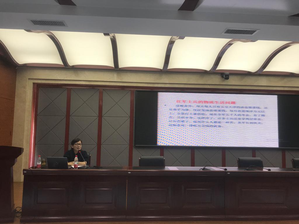 讲座伊始,张忠简短介绍了赵璐教授履历,与会人员报以热烈的掌声欢迎了她的到来。随后,讲座正式开始,赵璐教授以《井冈山精神到长征精神》为题,从井冈山革命根据地创建讲起,到中央革命根据地的建立,再到长征的出发与胜利结束共计三个时间段。讲座清晰的阐明了《中国红色政权为什么能够存在》,《井冈山的斗争》,《星星之火可以燎原》和《反对本本主义》四篇文章撰写的历史背景;以“坚定信念、艰苦奋斗,实事求是、敢闯新路,依靠群众、勇于胜利”为内涵形成的井冈山精神;古田会议在政治建军,思想建党的伟大意义;长征征程的艰难,长征胜利的伟大意义以及对革命理想和事业无比的忠诚、坚定的信念,表现出不怕牺牲、敢于胜利的无产阶级革命乐观主义精神,表现出顾全大局、严守纪律、亲密团结的高尚品德,创造出的伟大的长征精神。