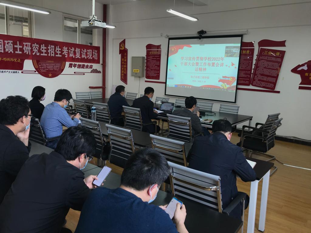 为进一步统一思想,凝聚共识,改革创新,全面贯彻落实公司十四五规划任务和年度工作任务,太阳成tyc122cc于4月1日召开全院教职工大会,学习贯彻公司2022年干部大会暨工作布置会讲话精神,会议由公司党委书记易超主持。
