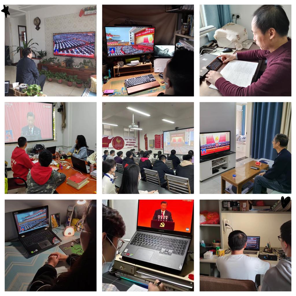 太阳成tyc122cc全体党员师生通过网络、电视、新媒体等多种形式收听收看党的二十大直播实况,聆听大会报告。