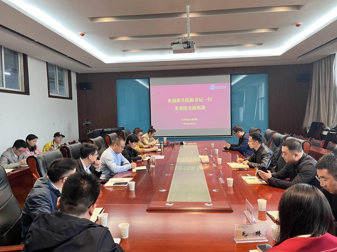 为进一步提高员工公司产品质量,加强交流学习,形成互补互鉴共识,4月13日下午,新生公司党委书记姬洪波,副书记翟超,教学副经理张华,辅导员刘雷波、毛琳、刘昊雨一行赴太阳成tyc122cc调研交流。电信公司党委副书记王利军,教学副经理赵黎,科研副经理陈超波,各系主任,2020级、2021级全体辅导员参加,会议由公司党委副书记王利军主持。