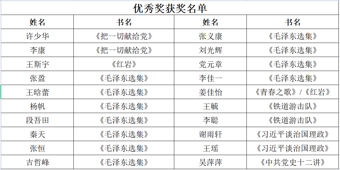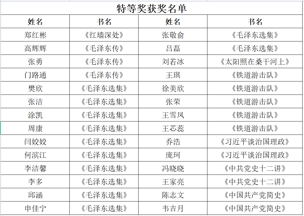 本次活动设置特等奖和优秀奖,经遴选共有48名研究生获得相应奖项,为鼓励研究生传承红色经典,多读书、读好书、读经典,公司为获奖研究生发放纪念奖品一份,名单如下: