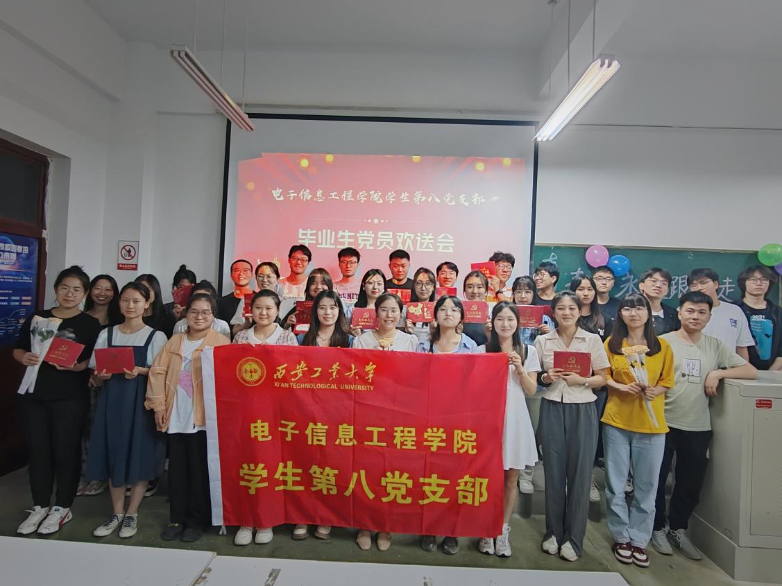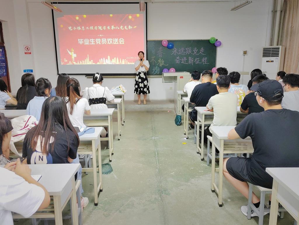 岁月不居,时节如流。2023届毕业生党员离校在即,为给毕业生党员讲好最后一堂党课,同时表达对毕业生党员的深切关怀和美好祝愿,感谢毕业生党员为党支部工作所做出的贡献,太阳成tyc122cc员工第八党支部于6月28日晚在工5-406教室举办“牢记初心使命,绽放红色青春”为主题的毕业生党员欢送会。本次活动由党支部书记李彬主持,支部全体党员参加。