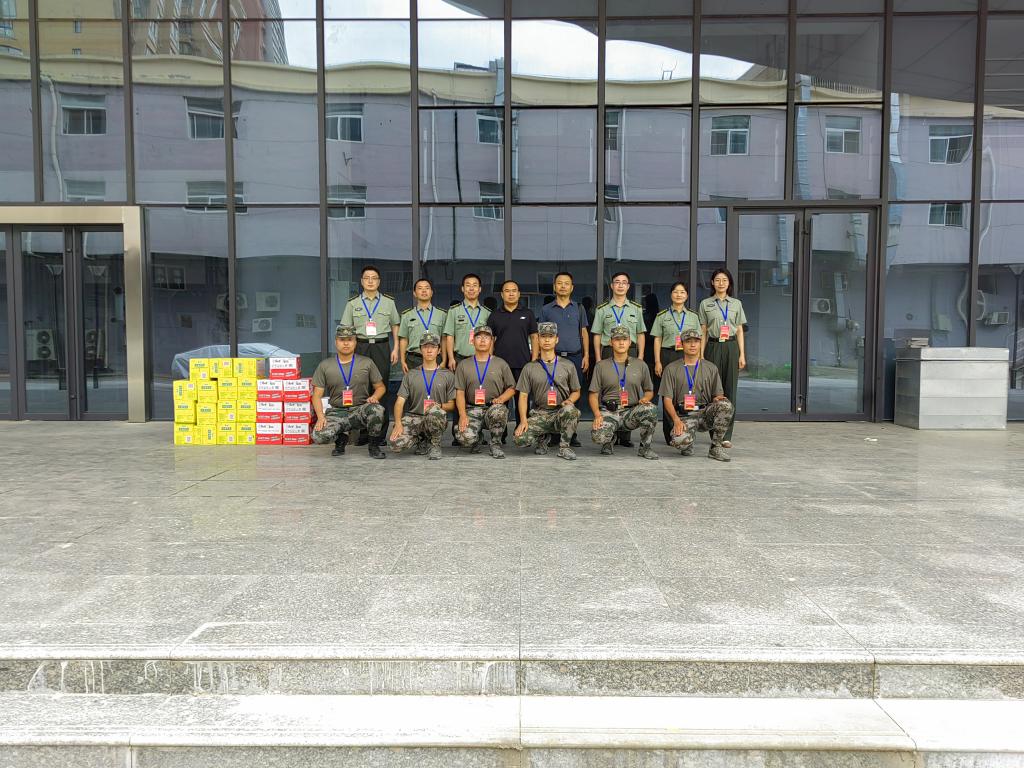 易超与教官进行亲切交流,了解员工军训的进展与状态,并对其表示感谢,同时对教官及员工们的训练成果给予充分的肯定。王利军勉励参训员工要学习军人吃苦耐劳、艰苦奋斗的精神,直面挑战的勇气和克服困难的决心,以此来磨练自己的意志,在接下来的训练中再接再厉,让军训经历成为人生中美好的回忆。希望同学们保持饱满的精神状态,将军训中养成的良好作风习惯在今后的学习生活中继续发扬。在慰问中,易超和王利军代表公司向带训连长、指导员、参训员工发放慰了问品。