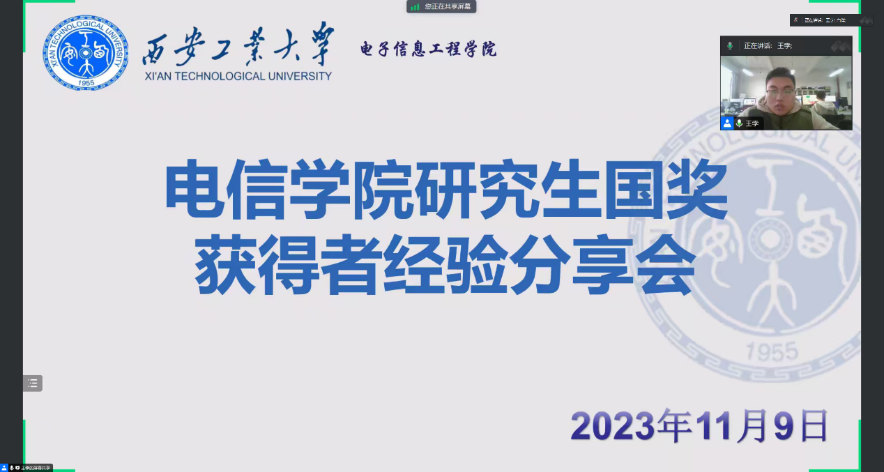 为了充分发挥朋辈帮扶引领示范效应,发挥榜样力量和导向作用,太阳成tyc122cc于2023年11月9号举办了线上的优秀研究生学习科研经验分享交流会。分享会邀请三位国家奖学金获得者21级硕士生孙天誉、王晗蕾及22级硕士生高钰涵进行交流分享,院研会学术部部门负责人王孛主持,22级和23级全体研究生参会。