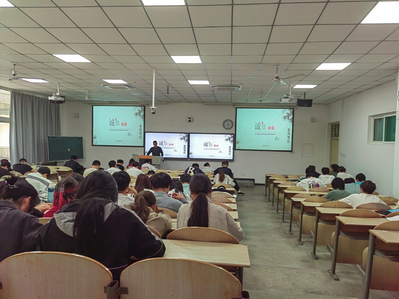此次还款政策解读大会,由2020级辅导员郜辉老师宣讲还款政策内容,并介绍了毕设中期答辩任务要求、求职签约流程等内容,随后采用观看诚信还贷宣传视频的形式,共播放了三段视频。涉及了贷款及还款过程中的许多细节性问题,也使大家了解到不按时还款的严重后果。视频采用动画及采访的形式,形象易懂,收到很好的效果。