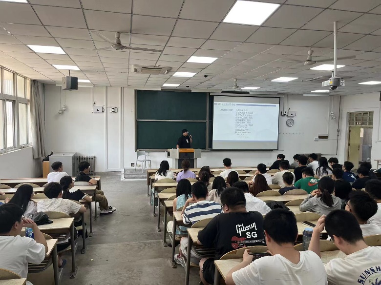 会议的开始,刘叶楠老师对会议进行致辞,他指出同学们应该做好任务安排,明确自己的求职意向,同时要认真投入自己的课题研究,立足于当下,着眼于未来。三位优秀研究生代表李洁馨、闫少雄以及王鹏同学结合自身丰富的求职经历,从制作简历、企业需求、专业技能、职业规划以及面试技巧等方面深入探讨求职经验,为同学们即将到来的秋招提出了宝贵的建议。